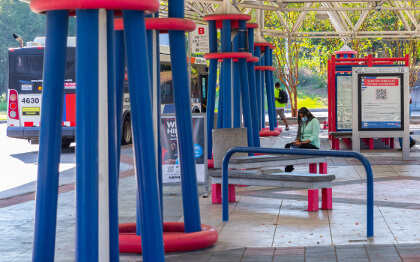 Increasingly, estimated arrival information will also be displayed digitally at bus stop locations and transit centers throughout the region. Transit centers are sheltered waiting areas where you can transfer to other METRO routes and services that provide access to even more destinations. They’re often found at the beginning or end of a bus route.