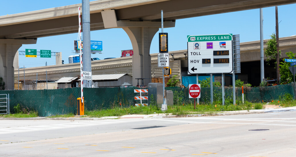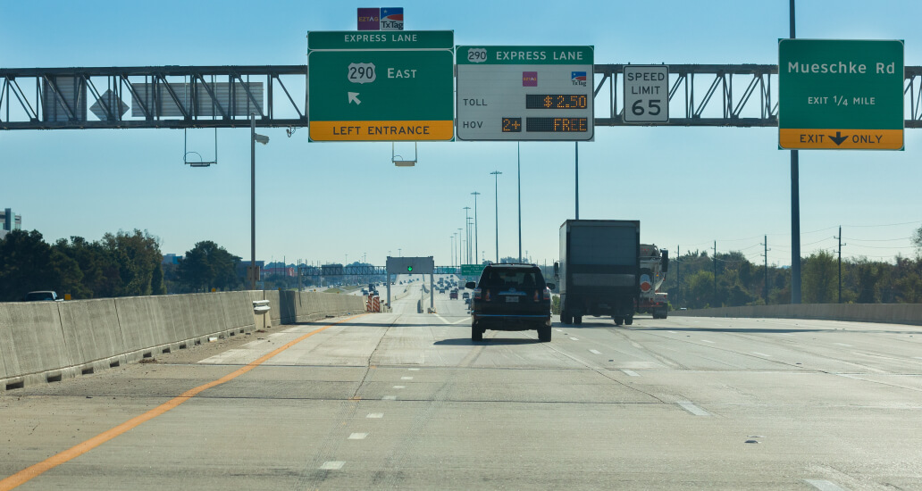 HOV stands for High Occupancy Vehicle. HOT stands for High Occupancy Toll. Both refer to a barrier-separated lane in the middle of I-45, Hwy. 59 and Hwy. 290. The lane runs in one direction, but it’s reversible depending on time of day. In the mornings, vehicles travel toward downtown Houston. In the afternoons, they travel away from downtown. Lane usage, and whether or not a toll is required, depends on the freeway you’re using, time of day and total number of people in your vehicle.